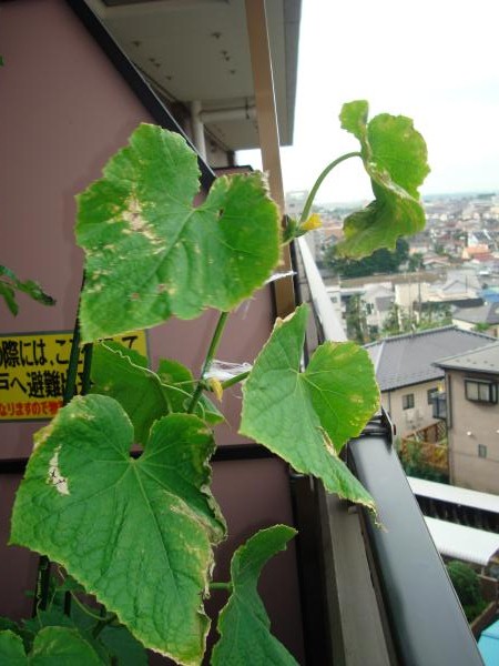 昨日の日記にも書いたが、強風のためかきゅうりの先端の葉っぱが