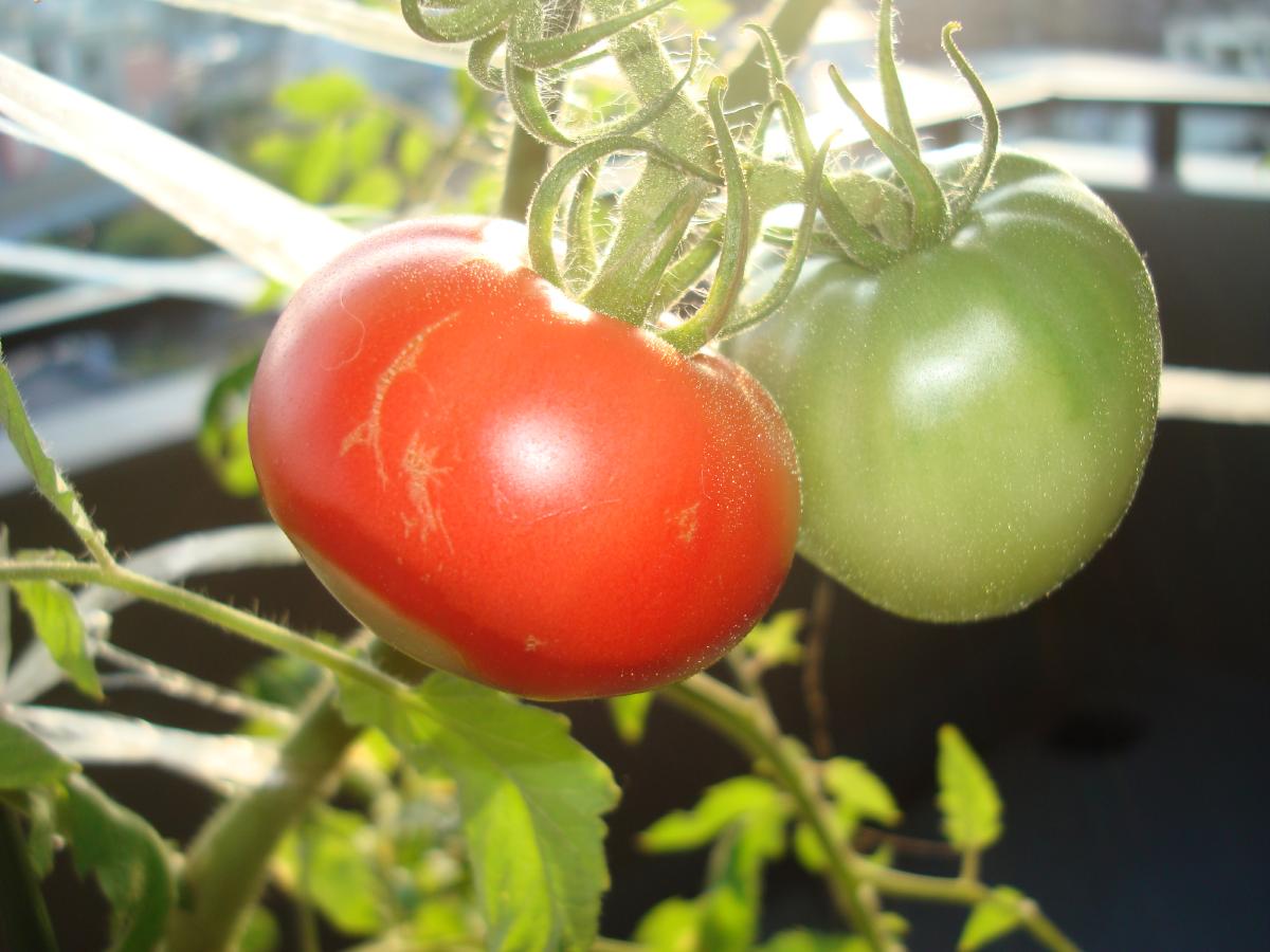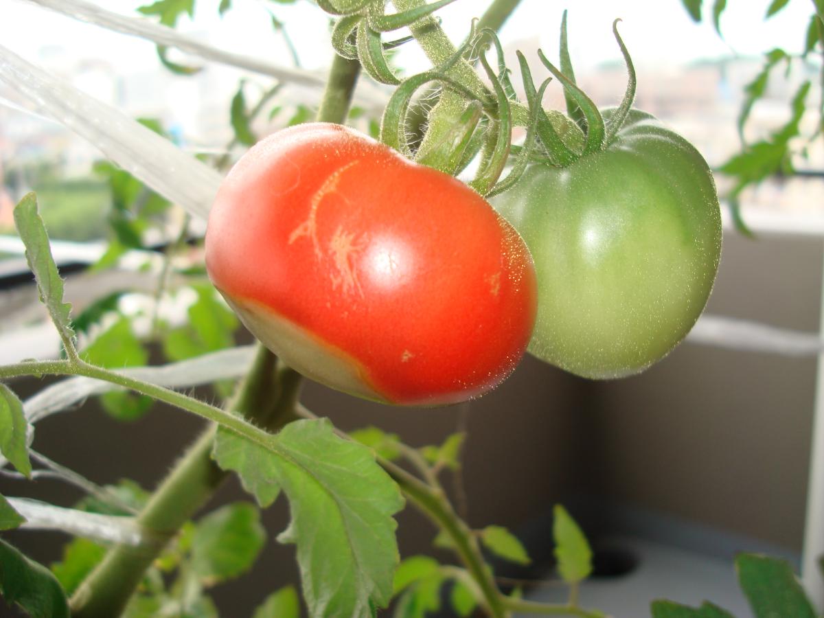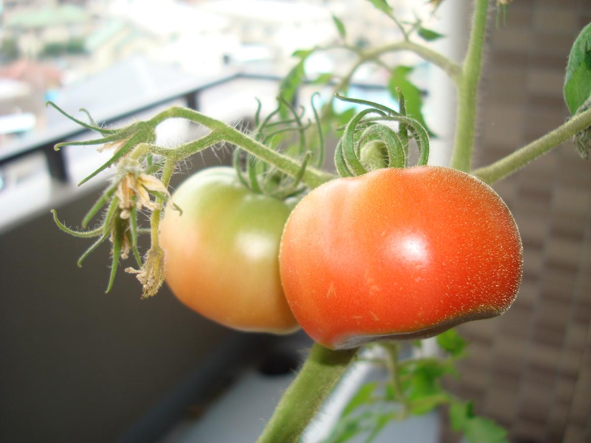 下の写真の左のトマト、赤みがずいぶん増したね。