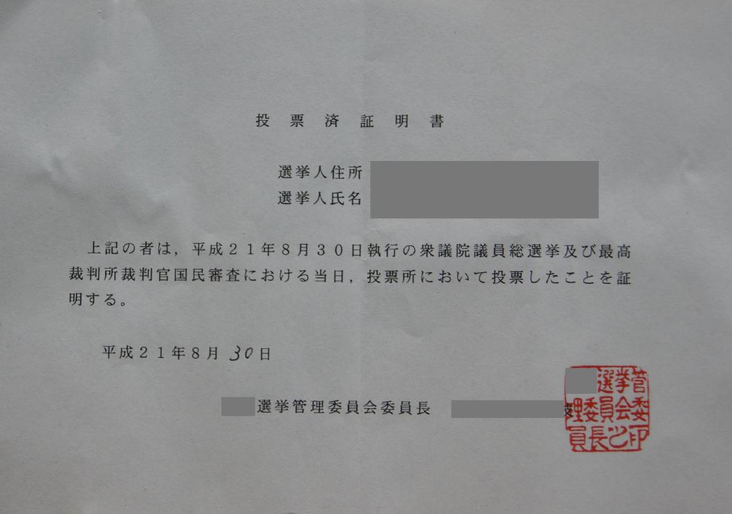 ところで、先日紹介した投票済み証、もらえるか聞いたら、もらえ