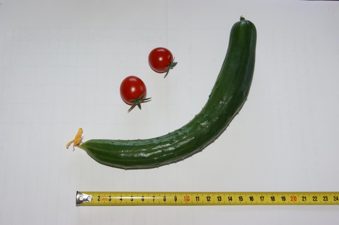 プチトマトと比べると、きゅうりの大きさが