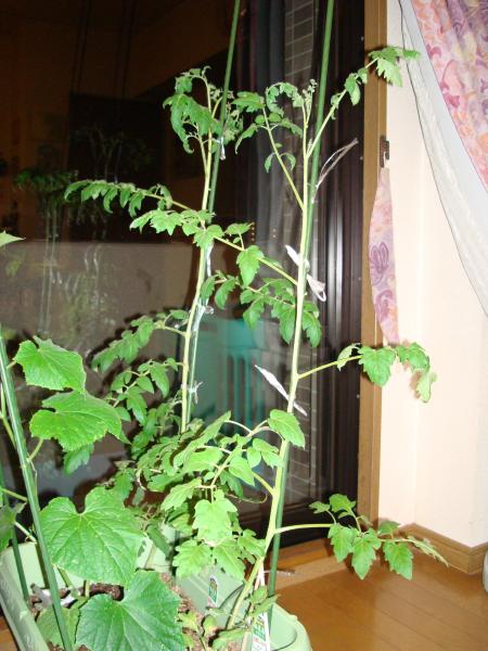 手前がプチトマト、奥がトマト。