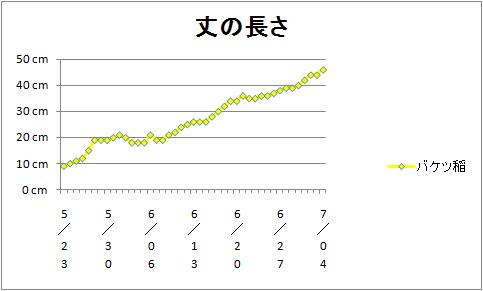 というか、先週まで、トマトたちの丈が長すぎて、バケツ稲のグラフ