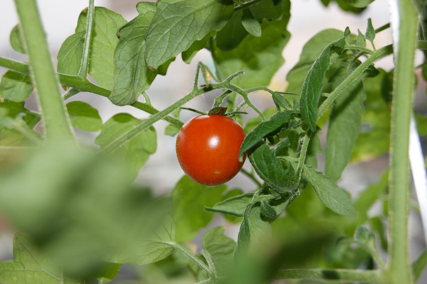 1個だけ残っているトマト、まだ色づかないけど、