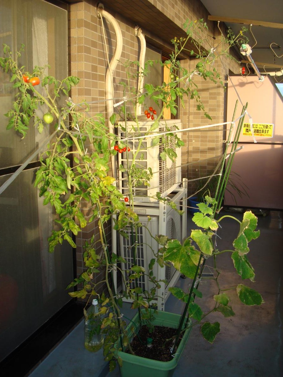 バケツ稲にメダカ、トマトたちのプランターや出窓のペットボトル水耕