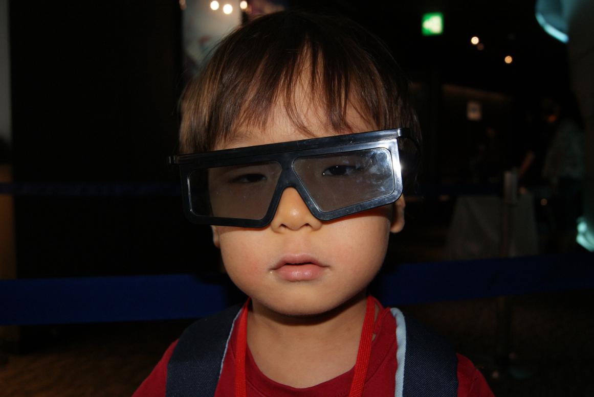 左が3Dメガネをかけるゆうくん。右はそのあと、かけるふりを